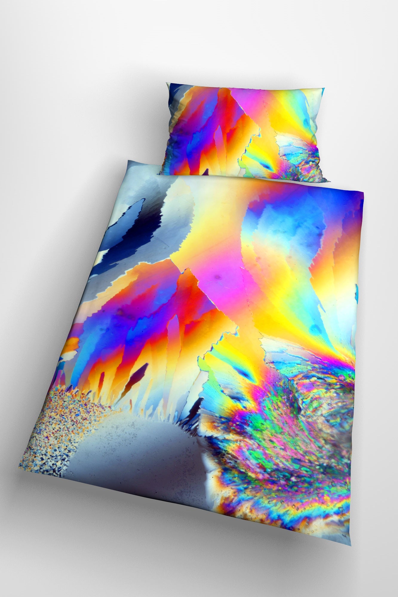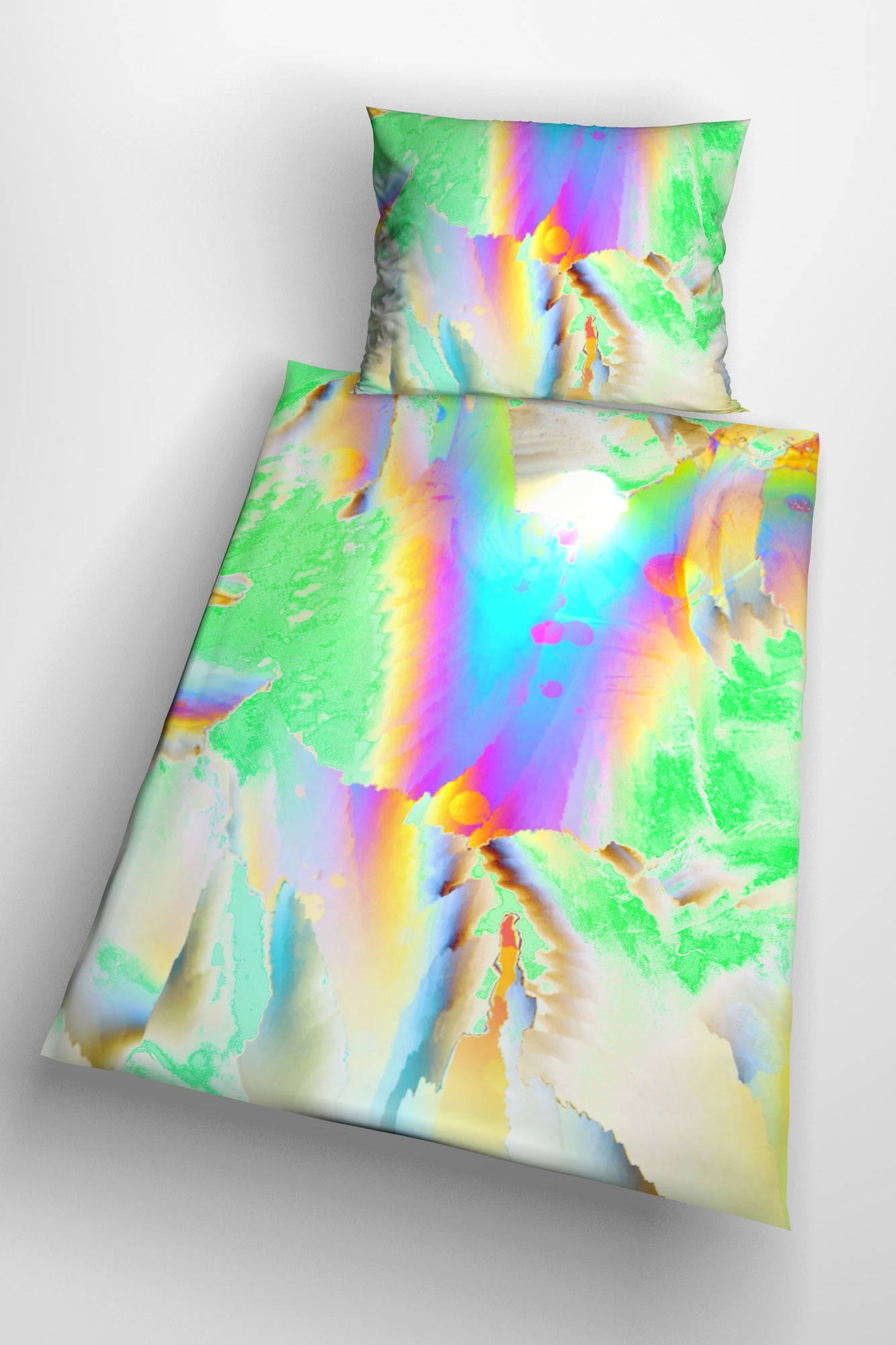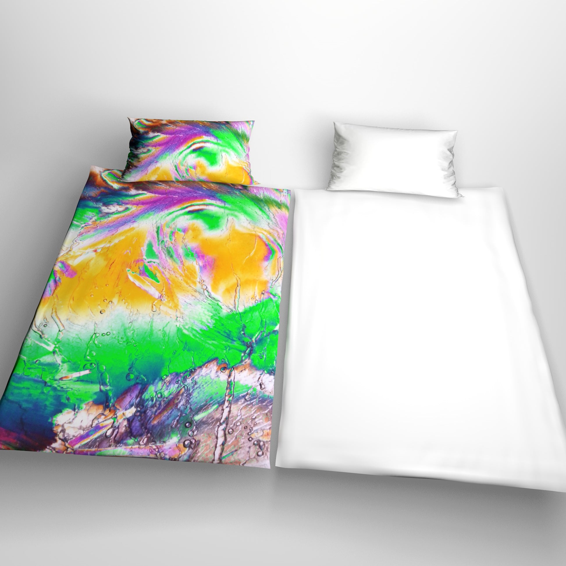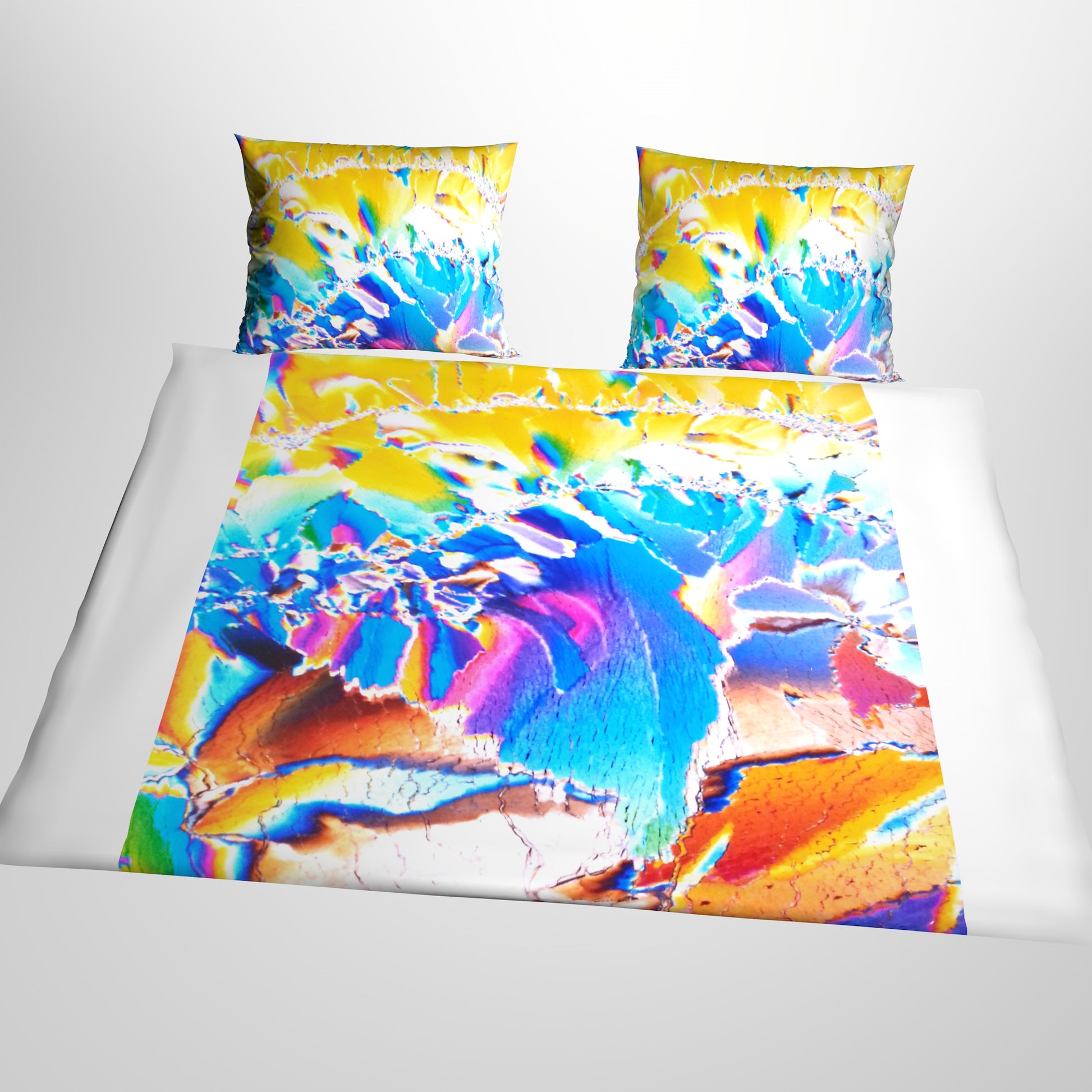 Produkte aus den Energie - Bildern von Arasonn® Essenzen, die Essenzen wurden im gefrorenen Zustand durch eine Spezialkamera fotografiert, so konnte man die verschiedenen Aura Bilder der Essenzen sichtbar machen. Aus diesen Bildern wird für sie eine Bettwäsche nach ihren Wünschen angefertigt.